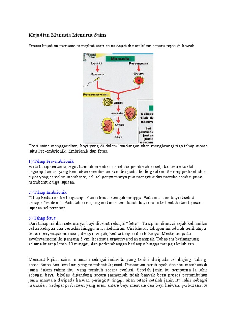 Proses Kejadian Manusia Menurut Al Quran Dan Sains Berdasarkan Dalil Dalil Yang Sahih